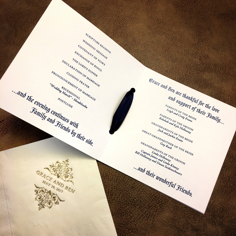 34 Wedding Programs Grace E Program Inside back to gallery Related Items Grace E Bridal Suite Grace E Enclosure Cards Grace E Invitation Grace E Napkins Grace E Notecard Grace E Program Grace E Program Inside Grace E Bridal Suite back to gallery